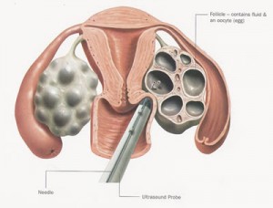 A diagram depicting the egg retrieval process during IVF