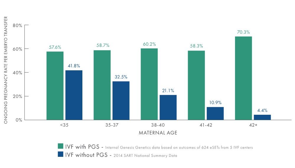With this approach, we can transfer a single normal embryo and expect pregnancy rates that are better than most clinics can achieve with transfer of 2 or even 3 embryos. The miscarriage rate is markedly lower, and the chances of a healthy full-term pregnancy are higher.